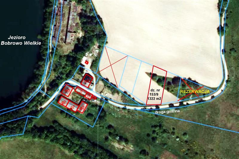 W bezpośrednim otoczeniu działki Jezioro Wielkie Bobrowo, dwie działki zabudowane budynkami mieszkalnymi, oraz otwarte tereny zielone – łąki i pola.