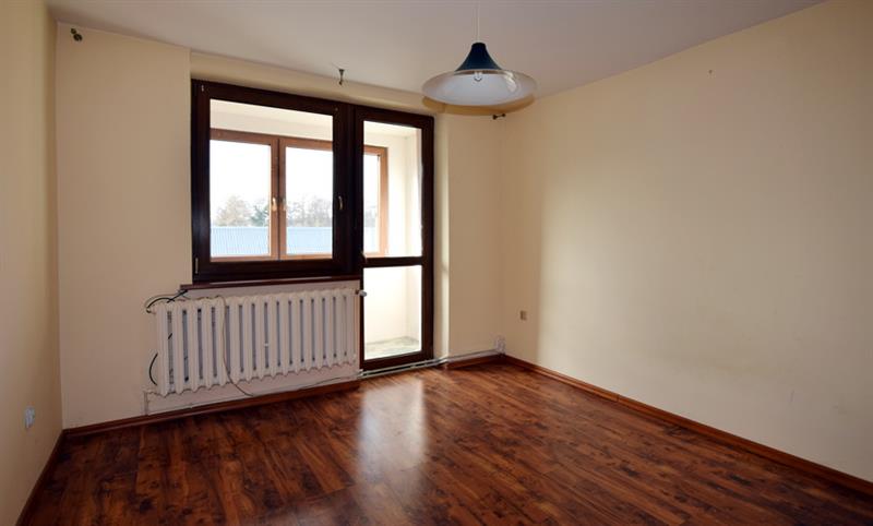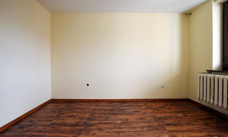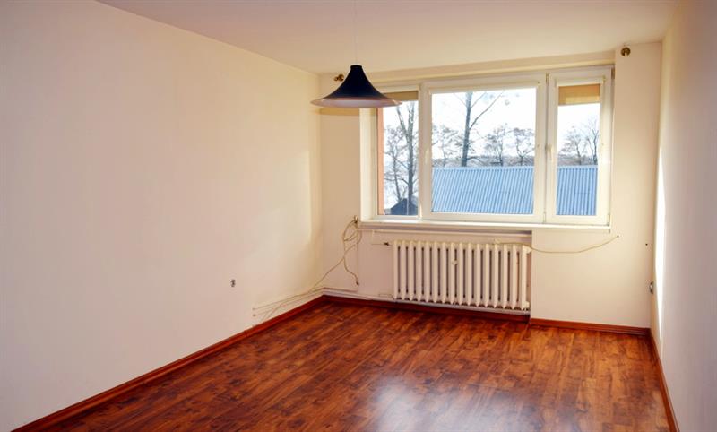 W pokojach: panele podłogowe, ściany w gładzi, okna