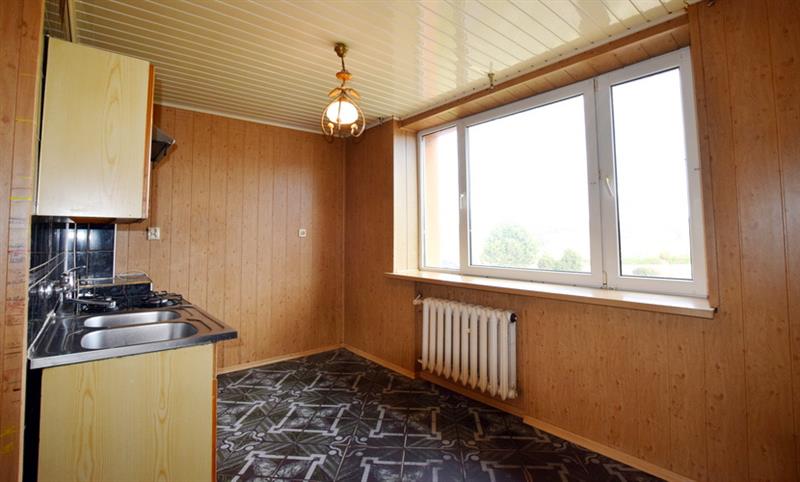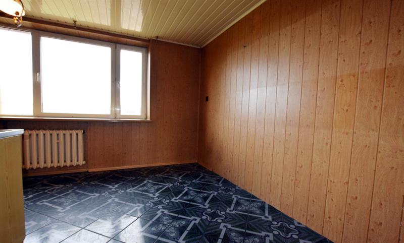 W kuchni: na podłodze płytki ceramiczne, na ścianach glazura i panele MDF, na suficie panele PCV, okno PCV, kocioł C.O.
