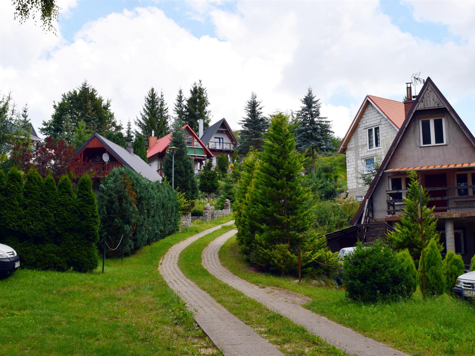 Kształt działki nieregularny, zbliżony do prostokąta o szerokości ok. 25 m i długości ok. 26, pozwala na praktyczne zagospodarowanie działki. Kompleks działek otoczony jest lasem z pięknym iglastym i liściastym starodrzewem przylegającym bezpośrednio do oferowanej nieruchomości. Wysokie, gęsto porastające wzgórze drzewa i krzewy stwarzają doskonałe warunki do wypoczynku, zapewniając poczucie prywatności i intymności.