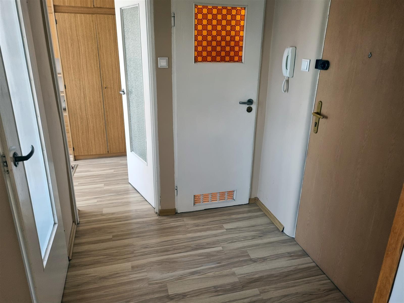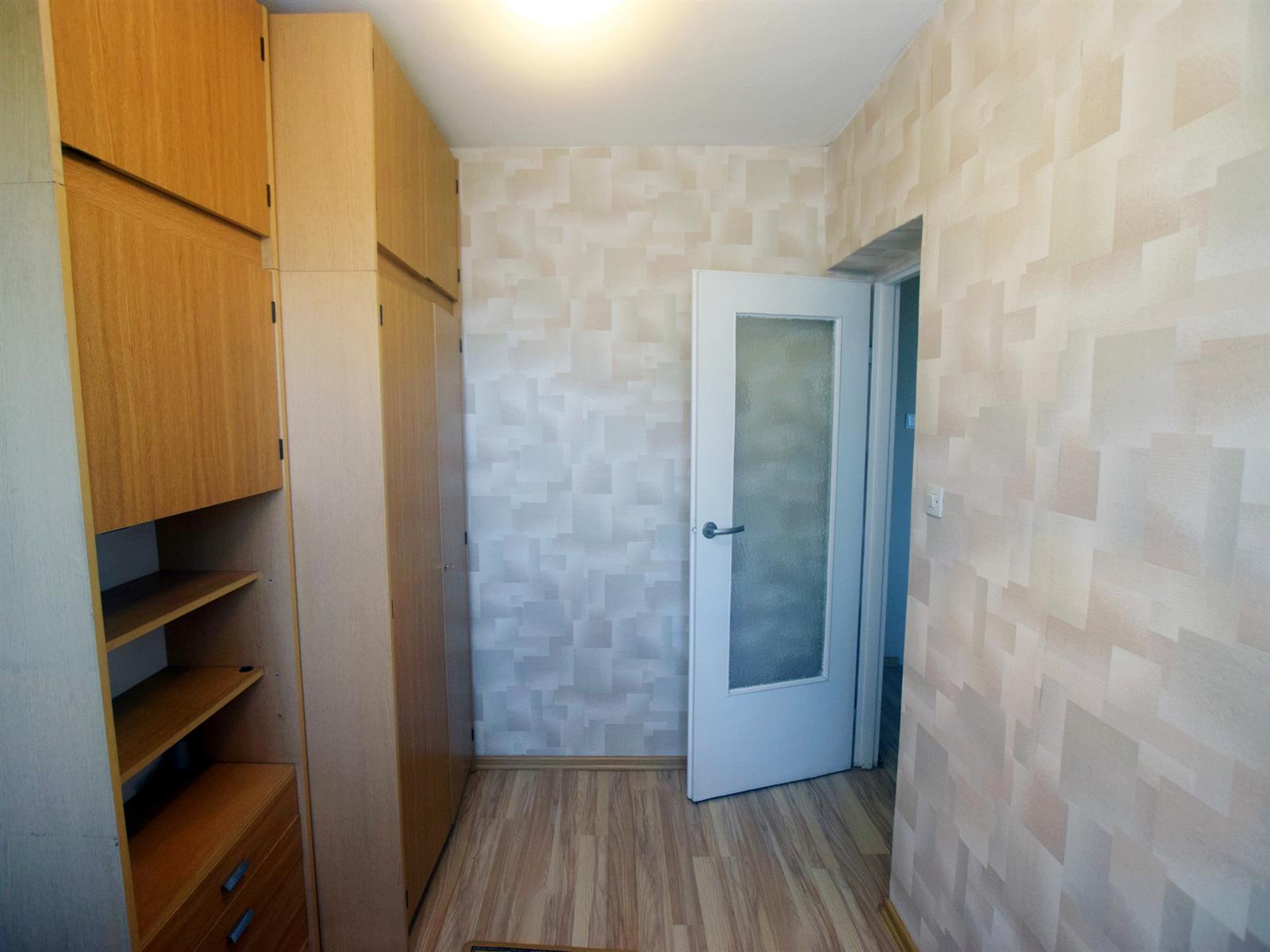 Na podłogach: w pokojach i przedpokoju panele podłogowe, w kuchni płytki PCV, w łazience terakota. Na ścianach i sufitach w dużym pokoju i przedpokoju gładź, w kuchni i łazience glazura starego typu.