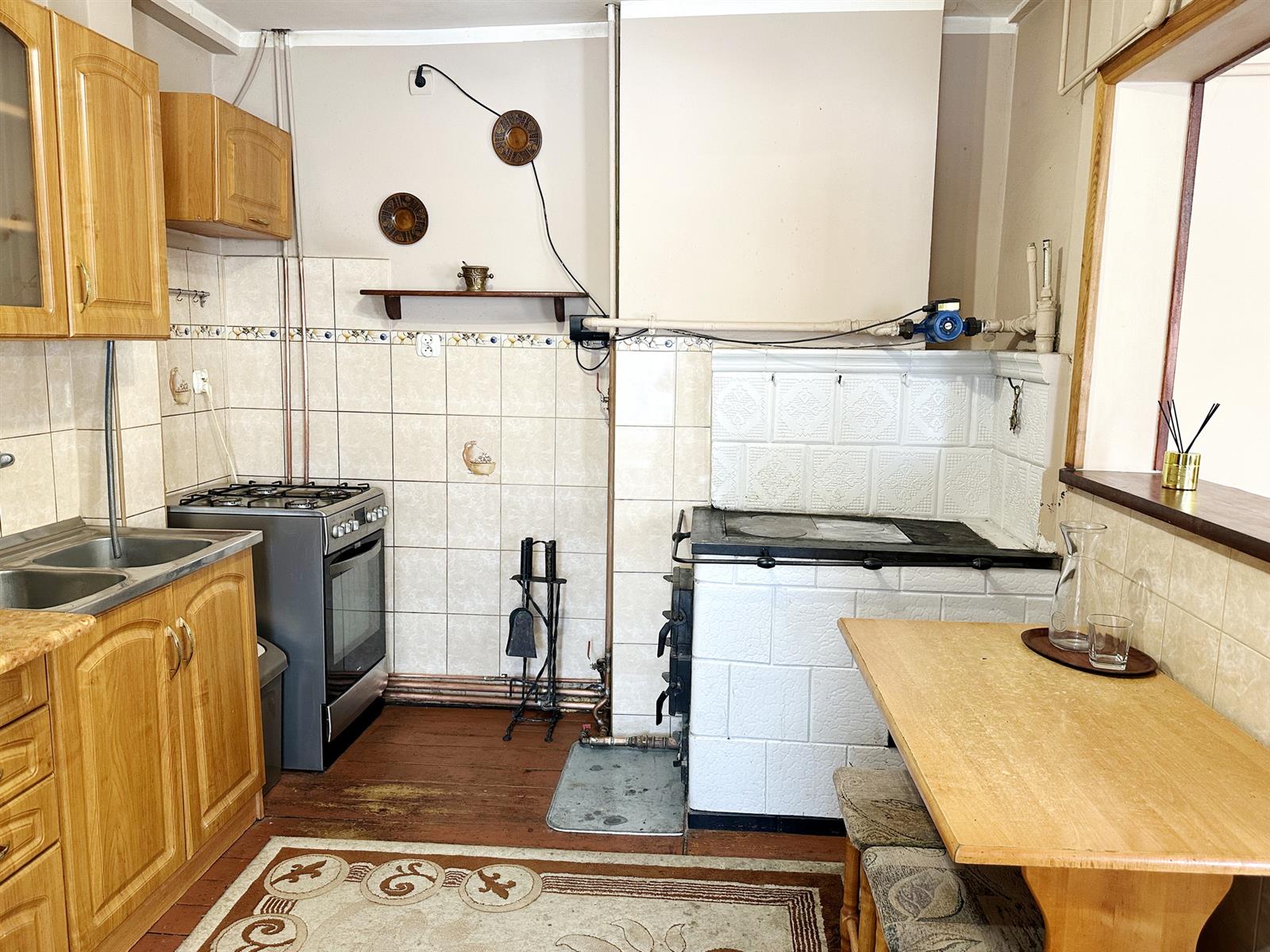 - ekonomiczne, niezależne ogrzewanie C.O. z kuchni kaflowej z wężownicą