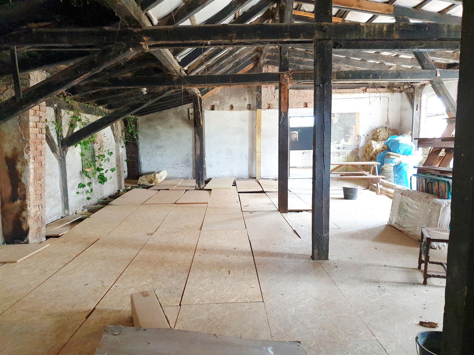 - nową podłogę z płyt OSB na części piętra